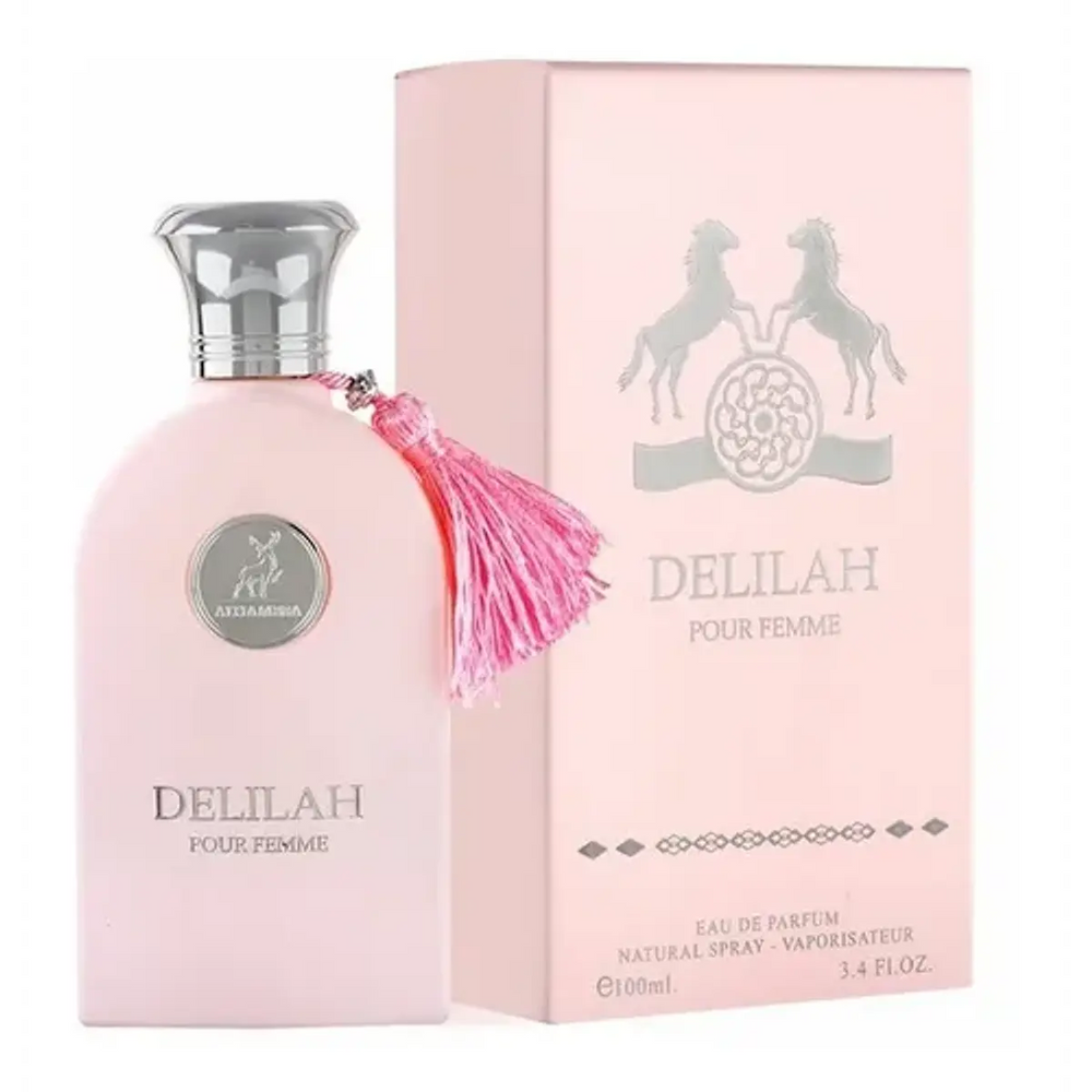 Delilah de Maison Alhambra es una fragancia de la familia olfativa Floral Frutal para Mujeres. Delilah se lanzó en 2023. Las Notas de Salida son ruibarbo, lichi y bergamota; las Notas de Corazón son rosa turca, peonía y azucena; las Notas de Fondo son almizcle blanco, vainilla y cachemira.